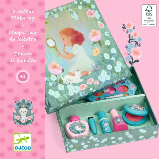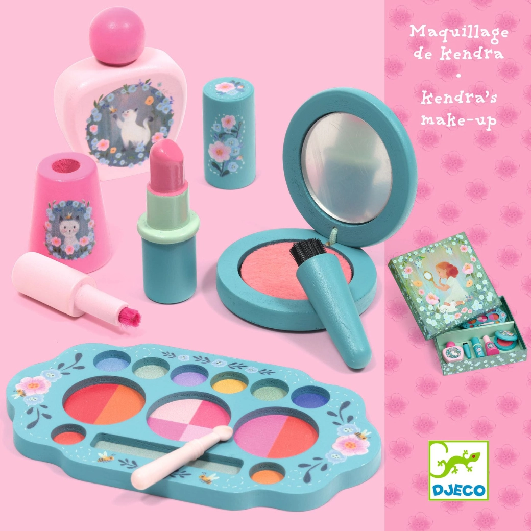 Kozmetični set Djeco Kendra prinaša otrokom zabaven način odkrivanja sveta ličenja. Zaradi premišljenega izbora barv in prijetne izvedbe je popoln za igrivo posnemanje odraslih in ustvarjalne preobleke. Vse je zasnovano z upoštevanjem občutljive otroške kože in udobne uporabe.