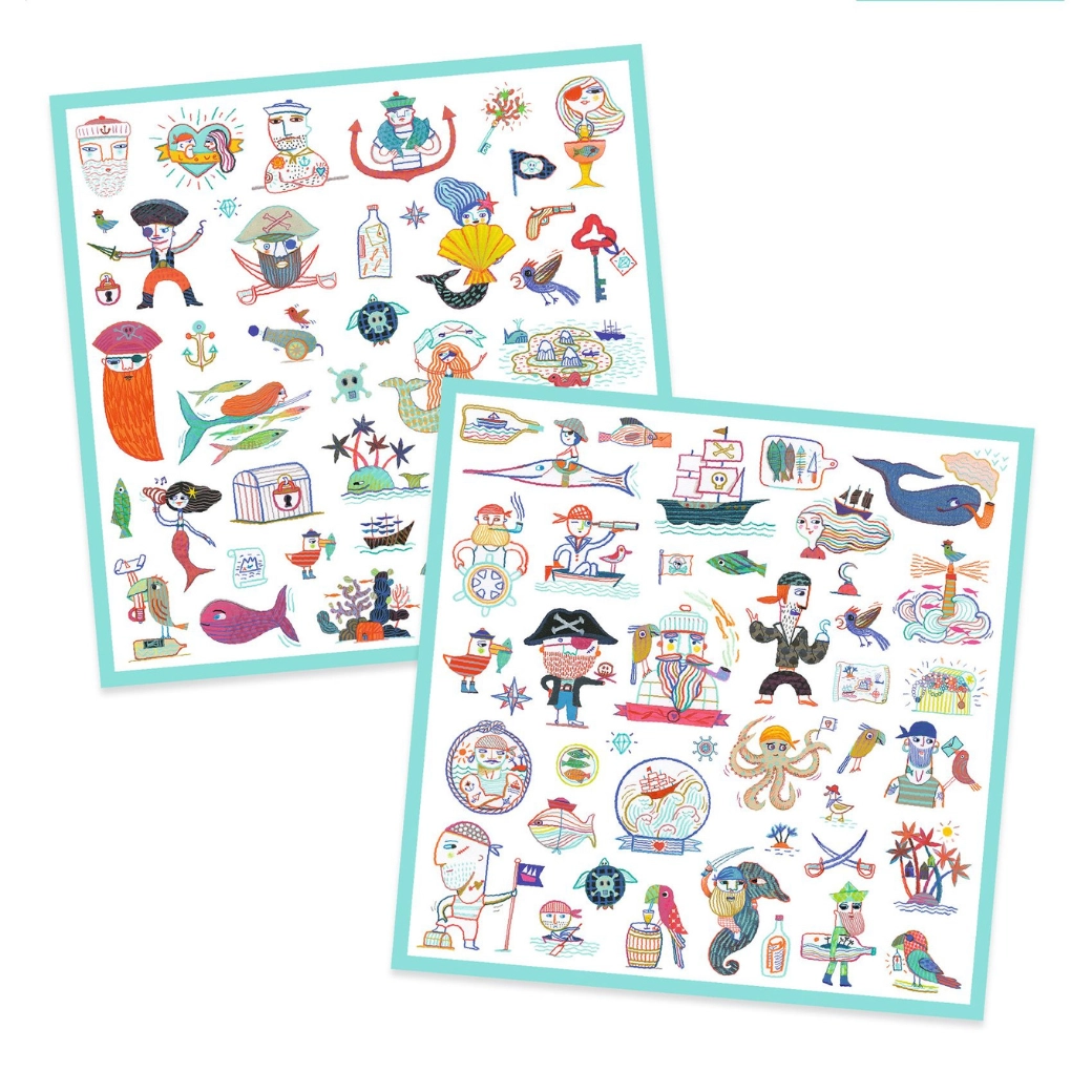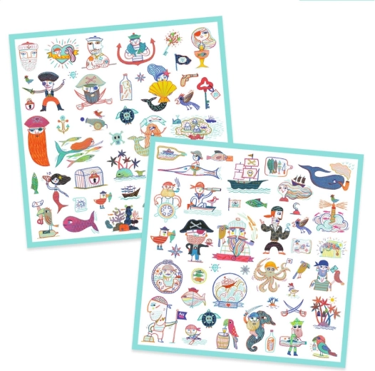 Odkrijte svet piratov z nizom nalepk, ki navdihujejo domišljijo in igrivo ustvarjanje. Otroci lahko krasijo zvezke, voščilnice, dnevnik ali ustvarjajo lastne prizore s pirati, zakladi in ladjami. Nalepke se preprosto prilepijo in po potrebi tudi previdno odlepijo z večine gladkih površin.