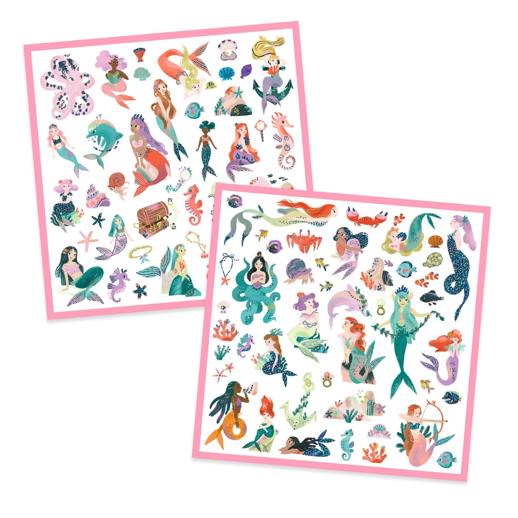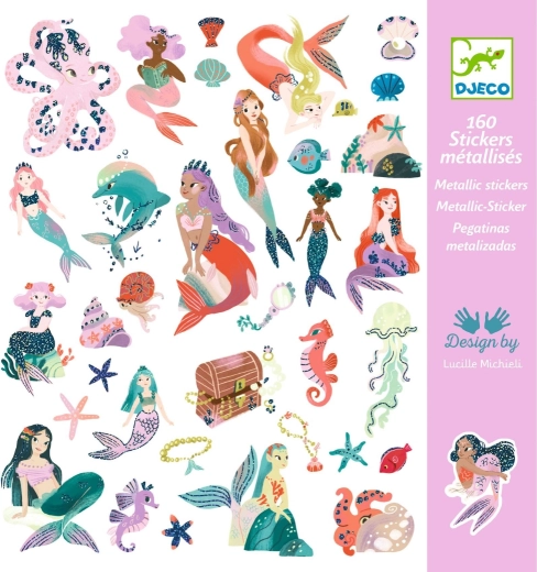 Čarobni komplet nalepk z motivom morskih deklic znamke DJECO bo otroke navdušil z nežnimi ilustracijami in preprosto uporabo. Odličen za okrasitev zvezkov, voščilnic in ustvarjanje, spodbuja kreativnost ter razvoj fine motorike. Odlično kot darilo ali majhna nagrada.
