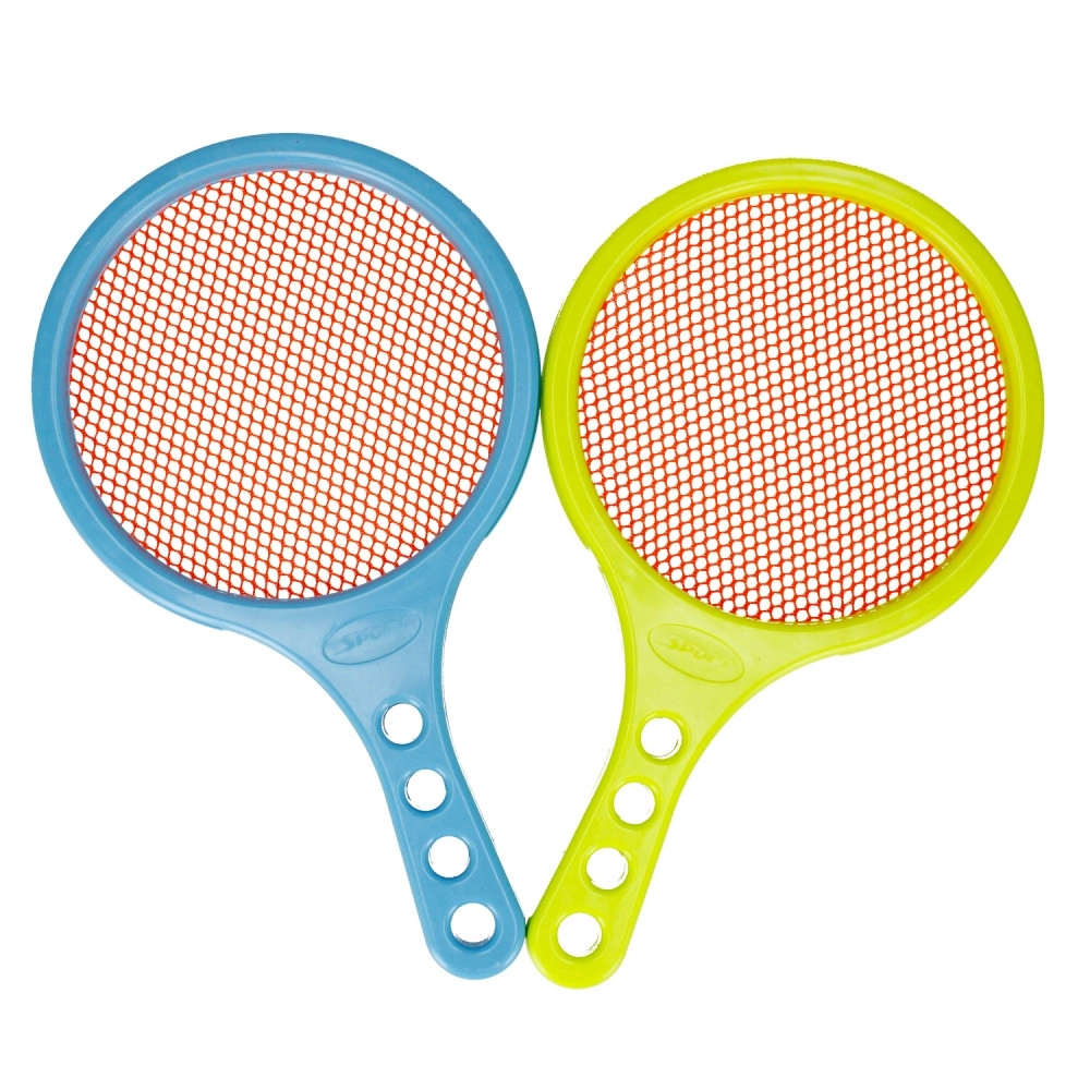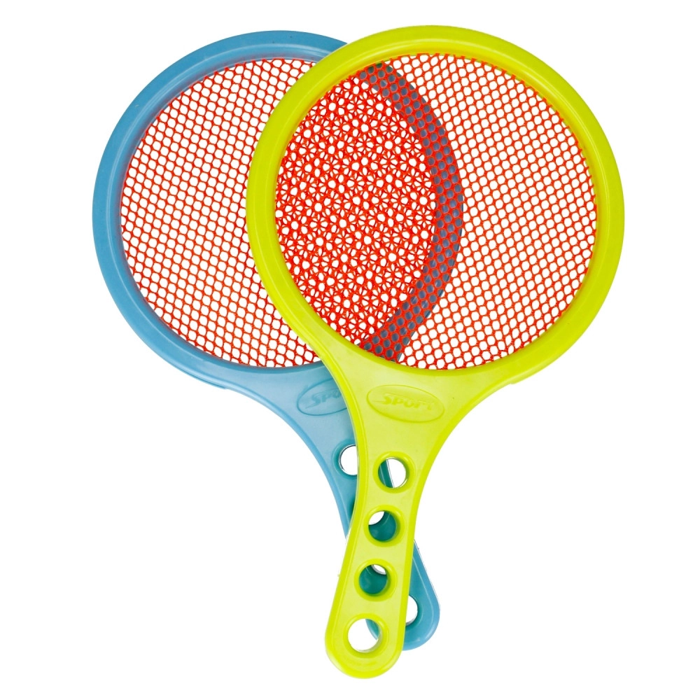 Ta barvit komplet je odlična izbira za prvi stik otrok z loparskimi športi. Zahvaljujoč lahkim plastičnim loparjem velikosti 32 × 19 cm se otroci hitro naučijo pravilnega oprijema in koordinacije gibov. Igrati je mogoče tako s košarico kot z mehko žogico – glede na razpoloženje in pogoje.
