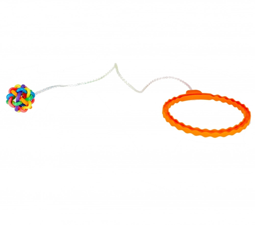 Žive barve za boljšo vidnost ter lahek plastičen obroč z žogico na vrvici za enostavno vrtenje in nadzor.