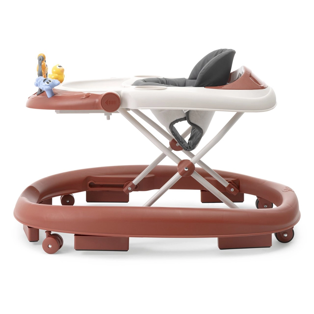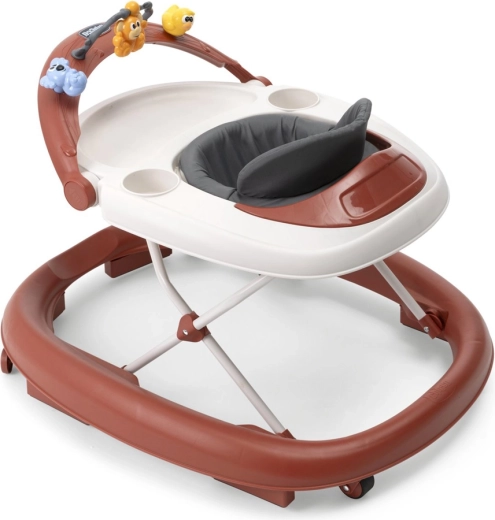 White activity tray z igralnim panelom in igračami podpira čutni in motorični razvoj, na voljo so tudi nosilci za pijačo na obeh straneh. Vrtljiva sprednja kolesca olajšajo manevriranje, medtem ko protizdrsna kolesca in zavore izpolnjujejo evropske varnostne standarde. Po igri hoduljico preprosto zložite v kompaktno obliko za lažje shranjevanje in prevoz.