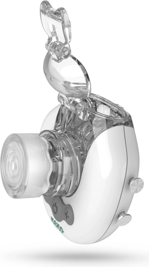 Naprava je certificiran medicinski pripomoček in zahvaljujoč napajanju iz vgrajene Li‑ion baterije 750 mAh zagotavlja udobje brez kablov doma, na sprehodu in na poti. V pakiranju prejmete 3 velikosti mask, ustnik, pritrditvene elastike, USB kabel in vzdržljiv etui za varno prenašanje.