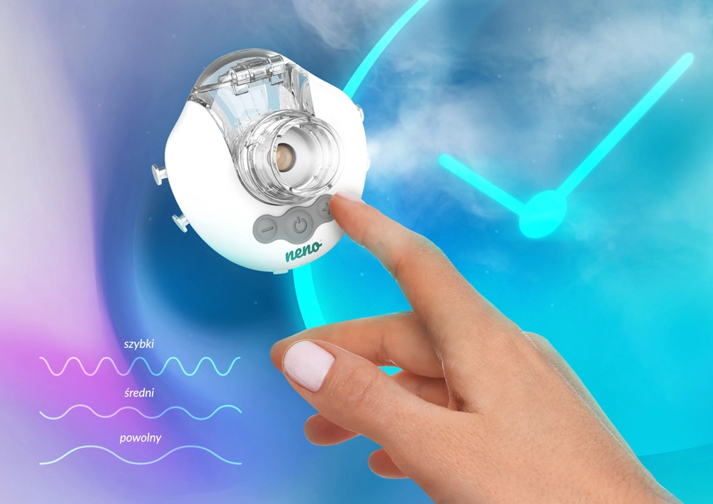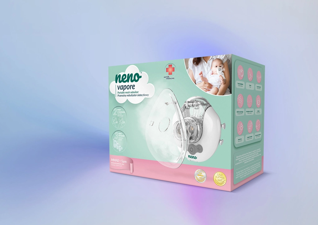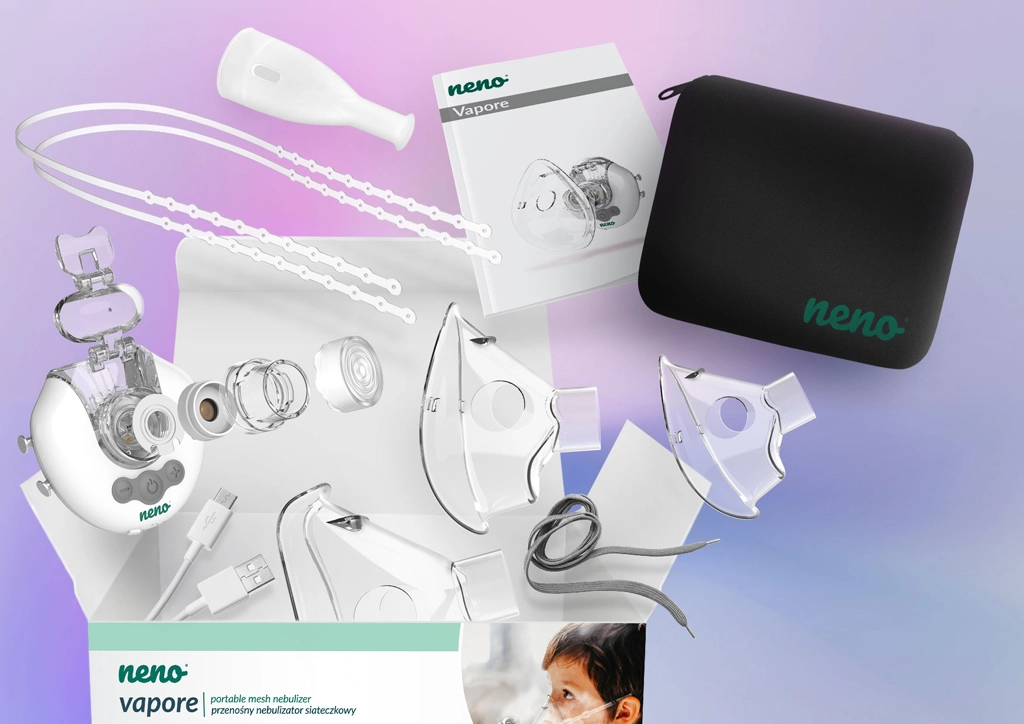 Neno Vapore je vsestranski brezžični inhalator, zasnovan za novorojenčke, otroke in odrasle. Zahvaljujoč nežni aerosolni meglici z delci MMAD <5 μm učinkovito dovaja zdravilo v spodnje dihalne poti. Tih način delovanja je idealen za večerno in nočno uporabo, medtem ko vam trije načini nebulizacije omogočajo prilagoditev intenzivnosti inhalacije trenutnim potrebam.