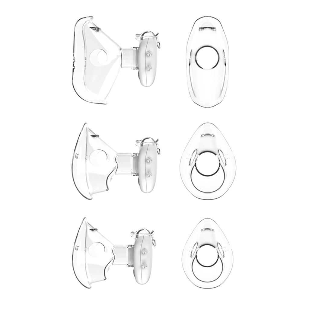 Del pakiranja so 3 velikosti mask in ustnik, zato zlahka izberete udoben način inhalacije za vsako starost.