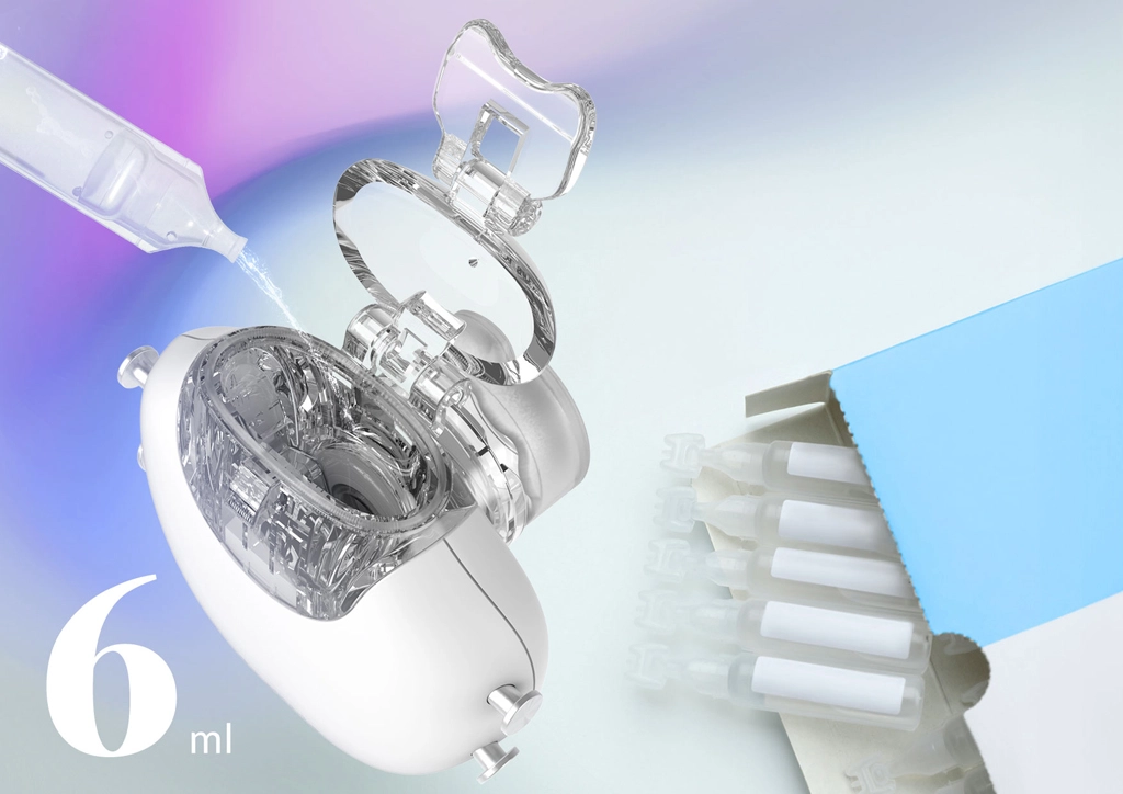 Nežna meglica z velikostjo delcev MMAD <5 μm prodira globoko v spodnje dihalne poti za največjo učinkovitost inhalacije.