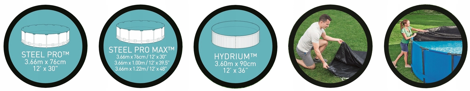 Popolnoma ustreza okroglim bazenom premera 366 cm. Združljivo s serijami Steel Pro MAX, Steel Pro in Hydrium Splasher.