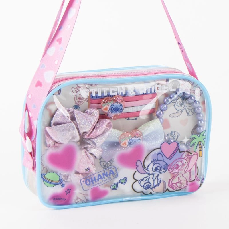 Popestrite vsako pričesko s čarobnim kompletom lasnih dodatkov v slogu STITCH. V priročni torbici najdete sponke, elastike, mehko scrunchie gumico in ujemajočo se zapestnico – vse idealno za vsakdan in posebne priložnosti.