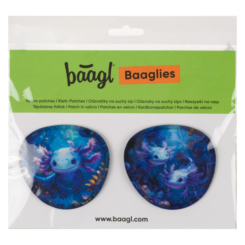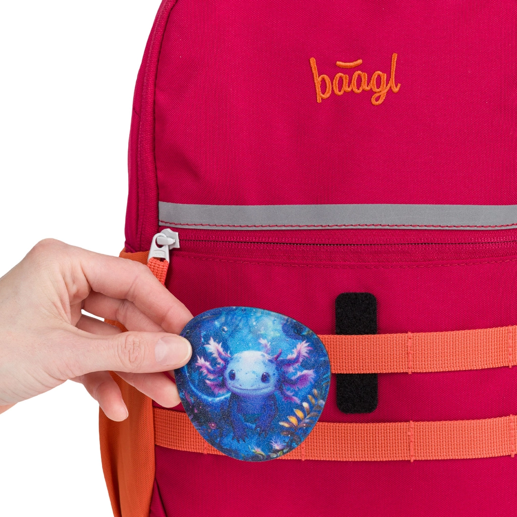Našitki BAAGLIES so pameten dodatek za šolske torbe in nahrbtnike BAAGL. Motiv Axolotl bo razveselil ljubitelje ljubkih živalic ter omogočil hitro personalizacijo šolske opreme. Preprosta namestitev z ježkom zagotavlja varno pritrditev in enostavno zamenjavo v nekaj sekundah.