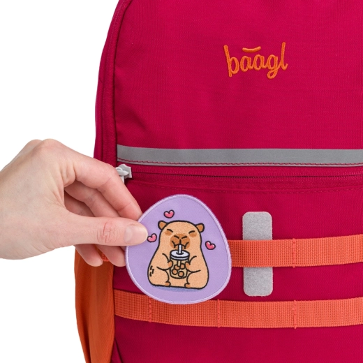 Stilske značke BAAGLIES z motivom kapibare hitro spremenijo videz šolske aktovke ali nahrbtnika BAAGL. Zahvaljujoč ježku jih preprosto zamenjate glede na razpoloženje, podprete izvirnost in otroško domišljijo. Spremenljiv dodatek z več kot 70 motivi poskrbi, da nahrbtnik nikoli ne postane dolgočasen.