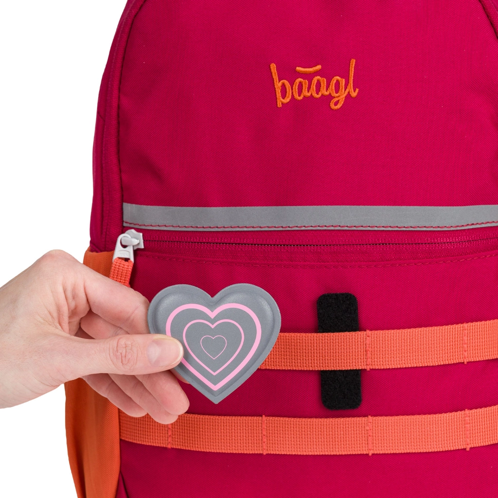 Značke BAAGL Baaglies so odličen način, da šolskim torbam in nahrbtnikom BAAGL dodate osebni slog. Zaradi enostavne namestitve na ježka jih lahko v nekaj sekundah zamenjajo tudi mlajši otroci. Set vsebuje 2 kosa z priljubljenim motivom srca.