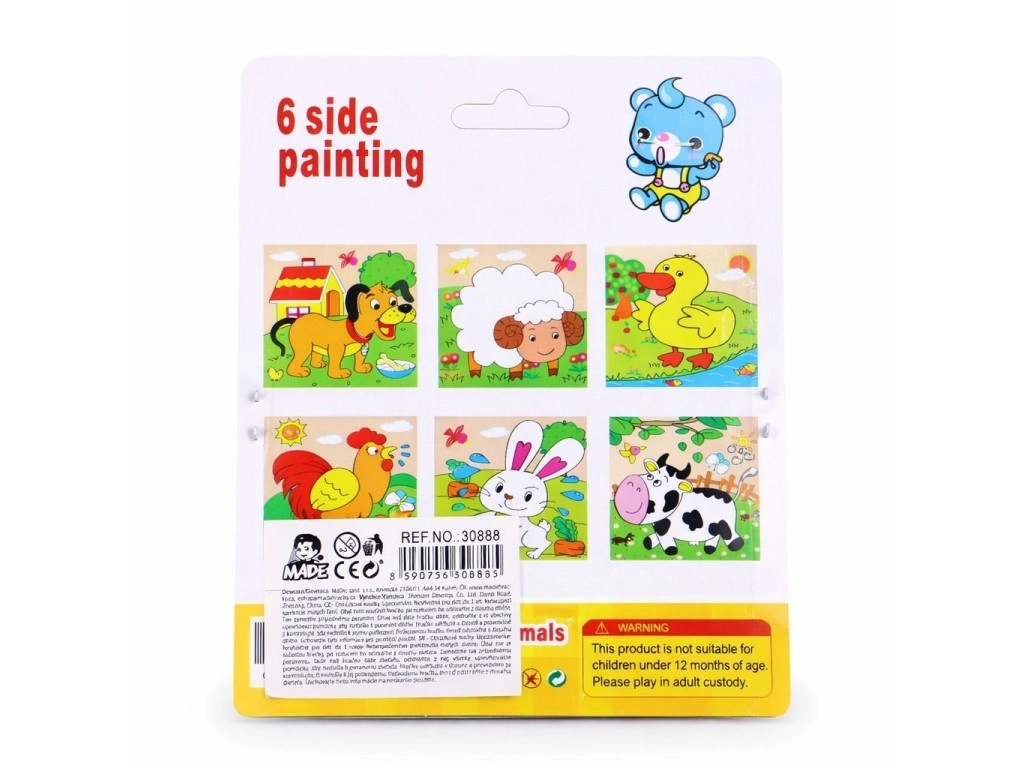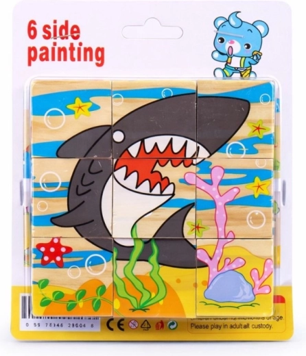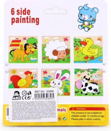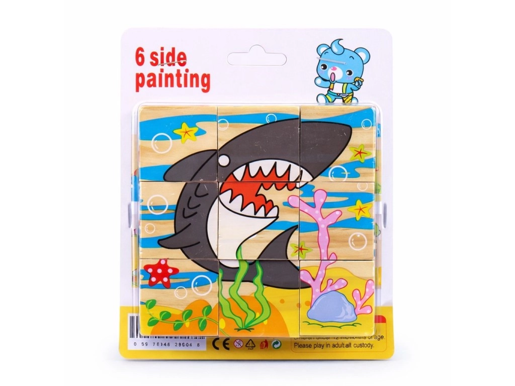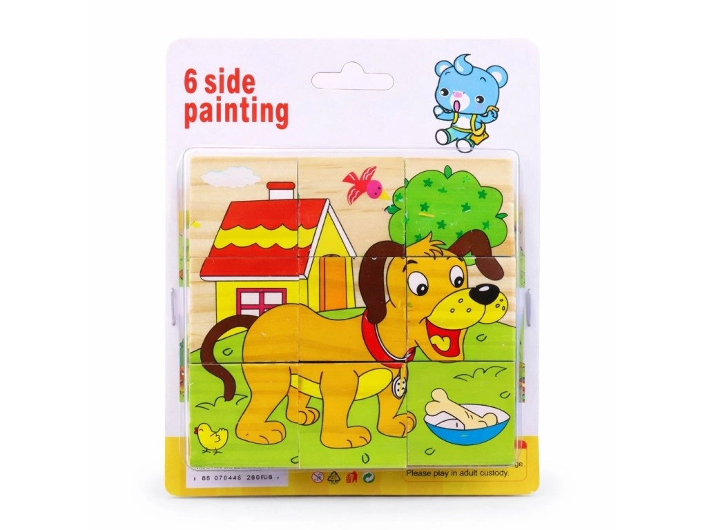 Te slikovne lesene kocke so brezčasna igrača, ki združuje igro in učenje. Na vsaki strani kocke je drugačna slika, zato lahko otroci sestavljajo pisane prizore, vadijo domišljijo in izboljšujejo koordinacijo oko–roka. Trdna izdelava iz kakovostnega lesa zagotavlja dolgo življenjsko dobo in varno igro.