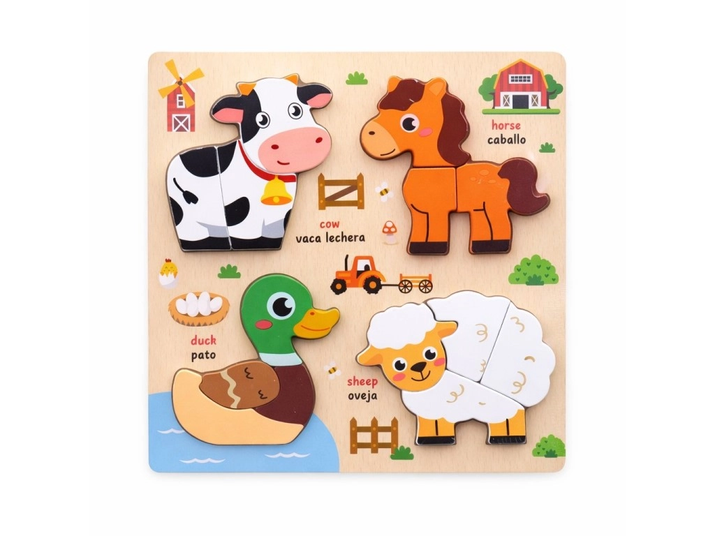 Te prikupne lesene puzzle z živalicami so popolna prva sestavljanka za male radovedneže. Zaradi trdnih koščkov in kompaktnih mer 18 × 18 cm je rokovanje enostavno, sestavljanje pa intuitivno in zabavno.