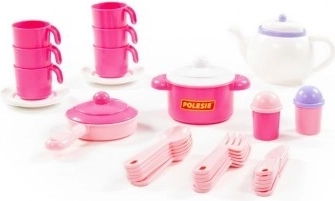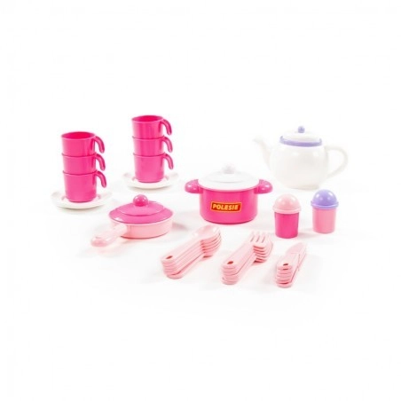 Odkrijte igrivi jedilni set Nastenka, ki otrokom omogoča, da si sestavijo lastno mizo in vadijo običajne situacije v gospodinjstvu. Zahvaljujoč popolni opremi za 6 oseb in 38 kosom je idealen tako za samostojno igro kot za skupinske aktivnosti.