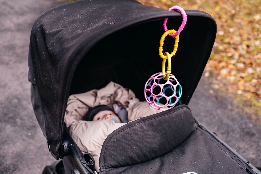 OBALL lahko preprosto pritrdite na igralni lok ali voziček in zaposli otroka med sprehodi, vajami na trebuščku ter igro na podlagi.