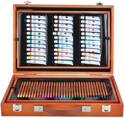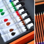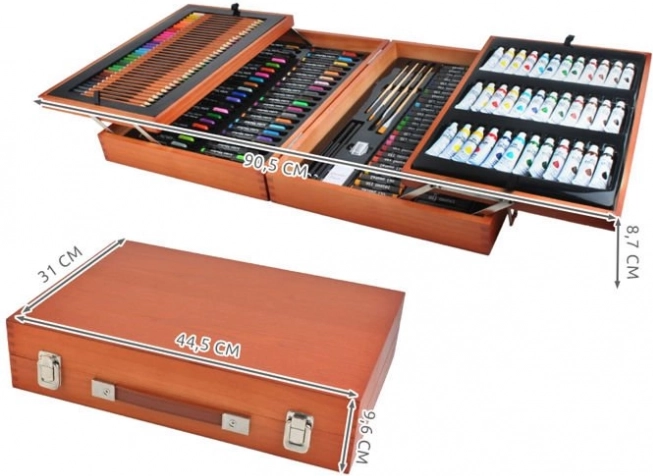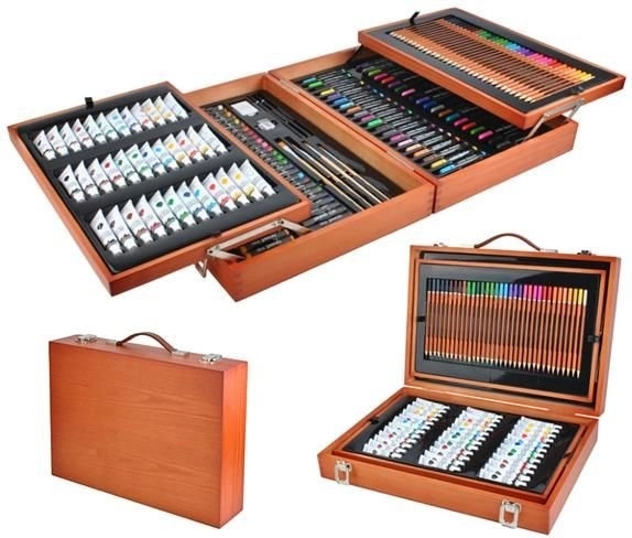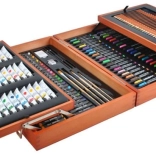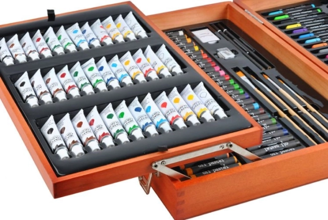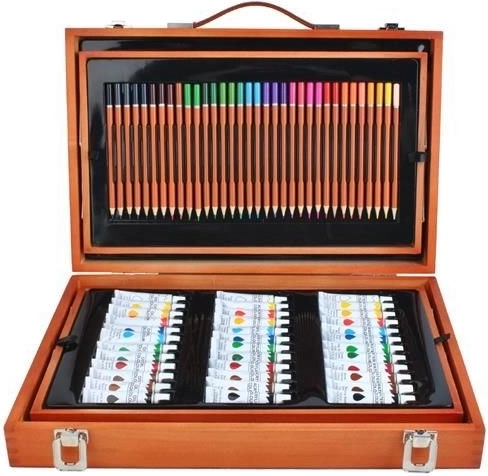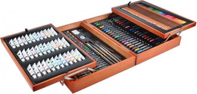 Velik komplet za risanje s 177 kosi, ki je idealen za male in velike umetnike. Zahvaljujoč trdnemu lesenemu kovčku z zaponkami vse ostane na svojem mestu, kar zagotavlja varen prevoz.
