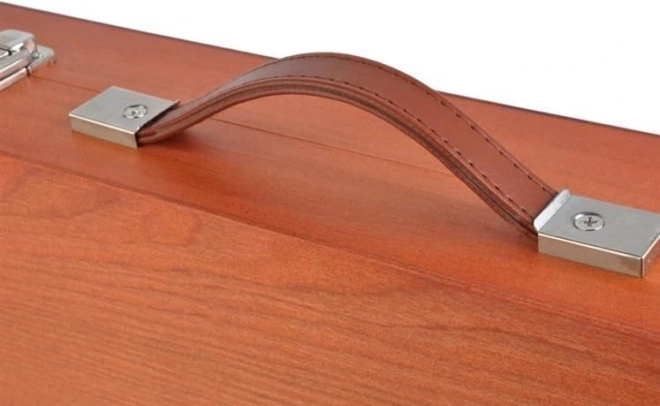Stabilen in stilski kovček z površino iz lakiranega lesa zagotavlja prostor za varno shranjevanje vseh pripomočkov.