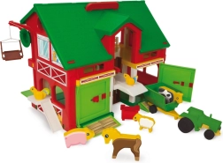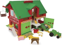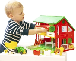 Z bogatimi dodatki se otroci na zabaven način učijo o gojenju poljščin in reji živali. Igra podpira razvoj fine motorike, koordinacije oko–roka in socialnih veščin, tako pri samostojni kot skupinski igri. Trpežni, zdravstveno neškodljivi materiali in praktičen ročaj na strehi zagotavljajo varno uporabo in enostavno prenašanje.