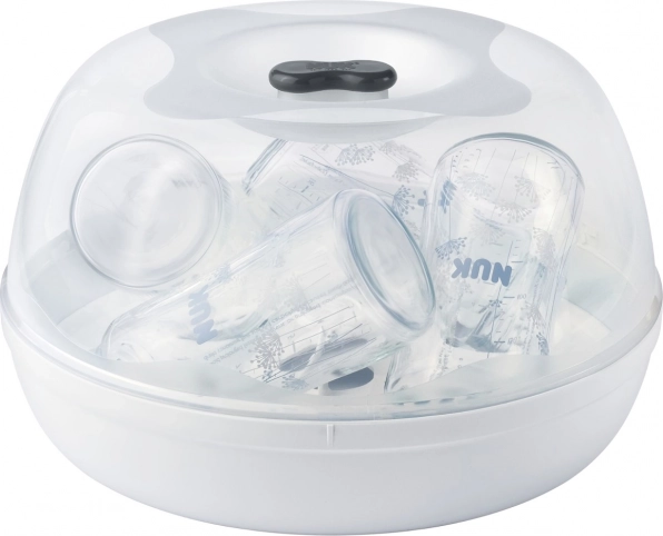 NUK Micro Express Plus je parni sterilizator za mikrovalovno pečico, ki poskrbi za zanesljivo razkuževanje dojenčkovih stekleničk in dodatkov v nekaj minutah. Zahvaljujoč pametnemu nosilcu sprejme do 4 stekleničke s prostornino 300 ml s širokim vratom in jih drži v pravilnem položaju za učinkovito sušenje. Prosojen pokrov in nov zaklepalni sistem zagotavljata varno in pregledno uporabo.