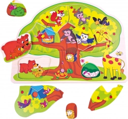 Vstavljanka je v obliki drevesa in vsebuje 11 samostojnih delov z živalicami ter trdno osnovo. Zahvaljujoč trpežni vezani plošči je idealna za vsakodnevno uporabo doma in v vrtcu.