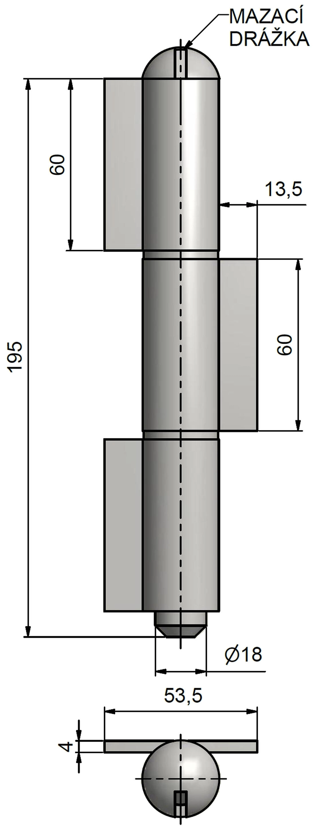 Robusten zatični tečaj dolžine 180 mm za zanesljivo in odporno vrtljivo povezavo velikodimenzioniranih vratnih in vratnih kril z podbojem. Idealen za težka krila, zagotavlja gladko delovanje, dolgo življenjsko dobo in preprosto montažo.