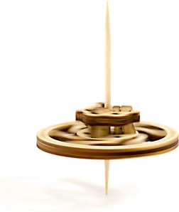 - Naravni les (lasersko rezani deli) + kovinski elementi pri vrtavki