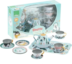 V škatli najdete vse za popolno čajanko: velik pladenj za enostavno serviranje, 4 skodelice s krožnički, 4 desertne krožnike in čajnik s pokrovom. Deli so lahki, trpežni in enostavni za vzdrževanje. Dizajn Michelle Carlslund s prijaznimi živalicami spodbuja otroško domišljijo ter nežno razvija socialne veščine pri skupni igri.