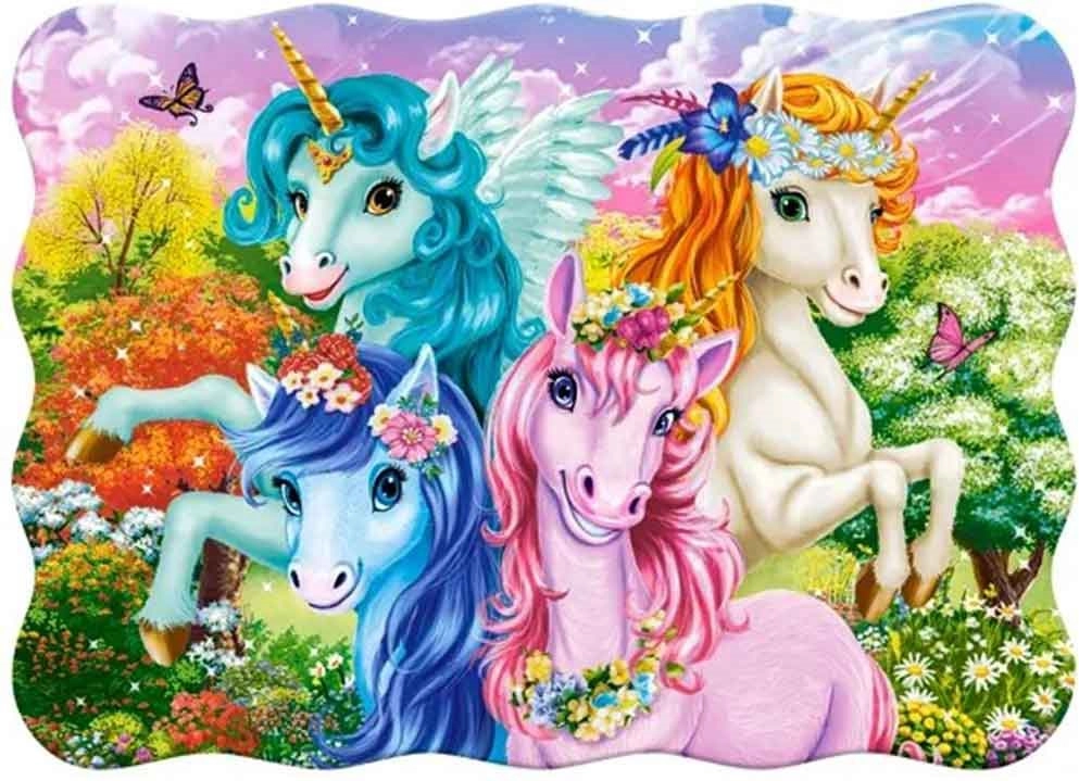 Odkrijte svet domišljije s sestavljanko Castorland Samorogi. Veliki kosi, približno 5 cm, olajšajo prijem in sestavljanje za majhne otroške roke, oblikovan rob pa pomaga pri orientaciji v sliki. Končna sestavljanka meri približno 32 × 23 cm – idealna velikost za prve sestavljanke.