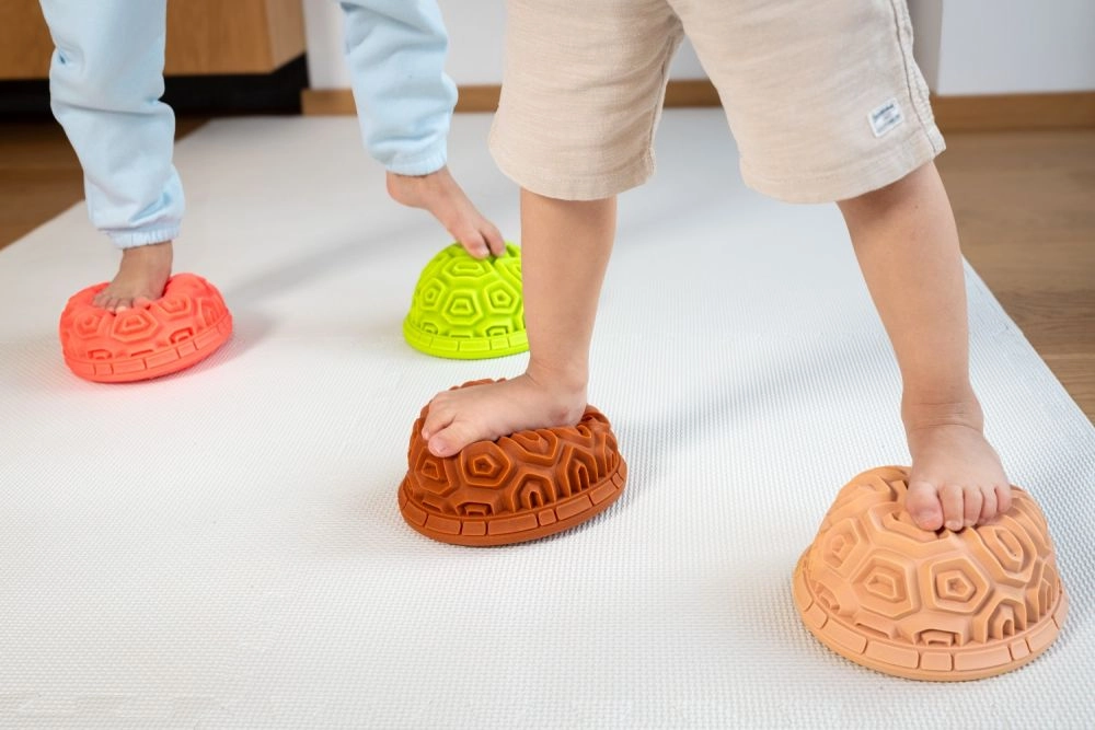 Ta senzorična polkrogla v obliki želvjega oklepa je zasnovana za ciljno stimulacijo dotika in propriocepcije. Reliefna površina pripomore k boljšemu zaznavanju telesa, krepi stabilnost gležnjev in izboljšuje držo. Primerna za otroke in odrasle pri vadbi, fizioterapiji ter specialni pedagogiki.