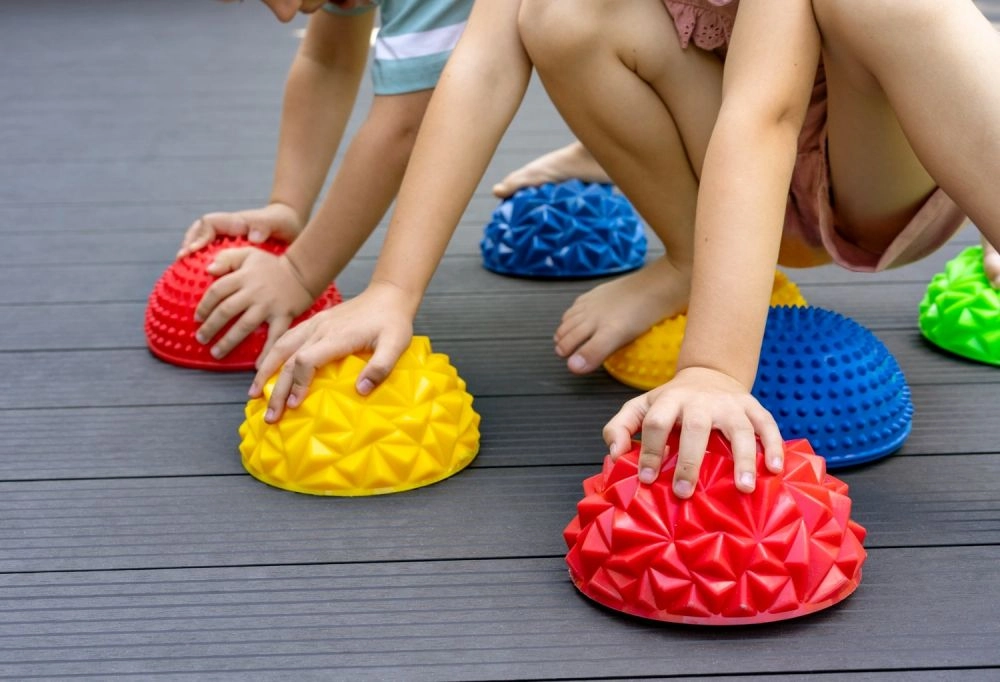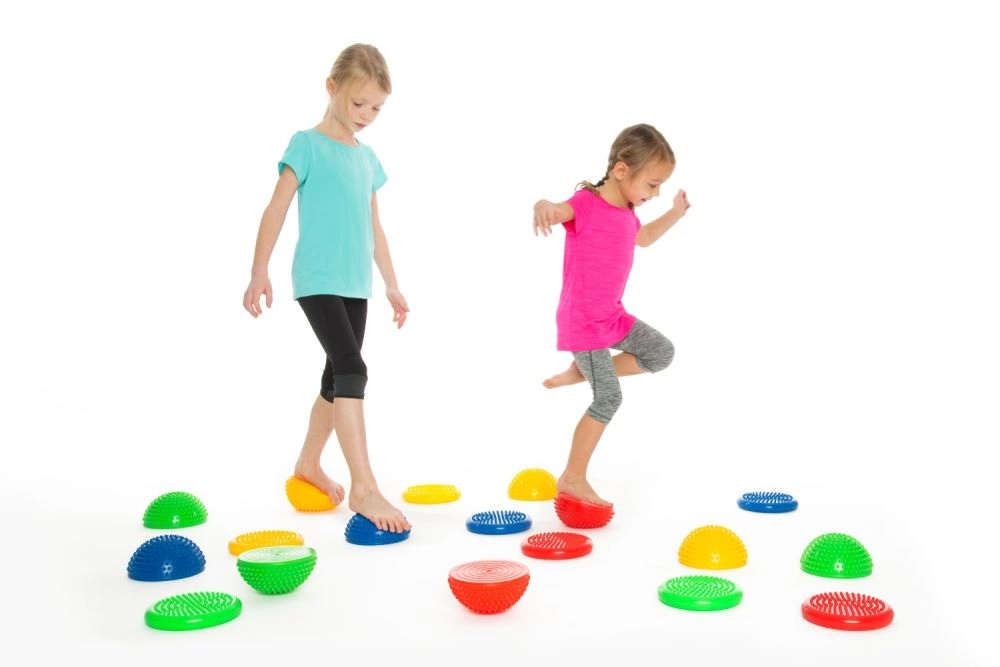 Odkrijte zabaven način za izboljšanje ravnotežja, stabilnosti in čutnega zaznavanja. Ti kompaktni senzorični polkrogi s premerom 16 cm s protidrsnimi masažnimi bodicami so idealni za otroke in odrasle. Uporabni so za trening koordinacije, krepitev jedra telesa in aktivno masažo stopal – doma, v vrtcu, telovadnici ali pri fizioterapevtskih vajah.