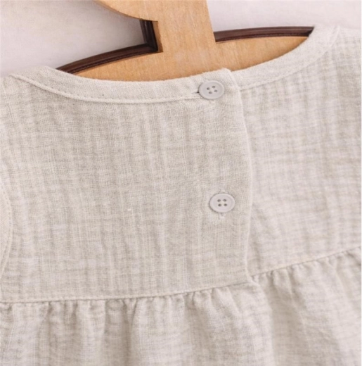 Muslin (100% bombaž) sodi med najmehkejše in najbolj zračne tkanine. Zaradi svoje zračne strukture odlično diha, pomaga preprečevati pregrevanje in ohranja otrokovo udobje tudi v vročih dneh. Material je mehak na otip, z vsakim pranjem še mehkejši, hkrati pa odporen za pogosto nošenje.