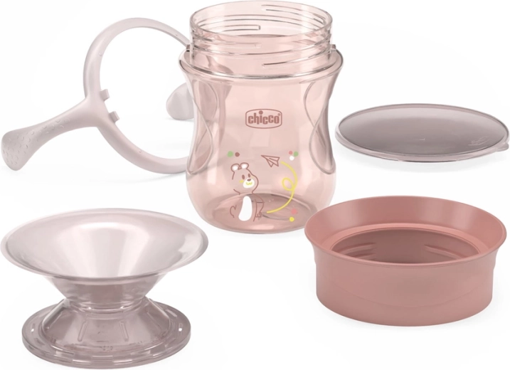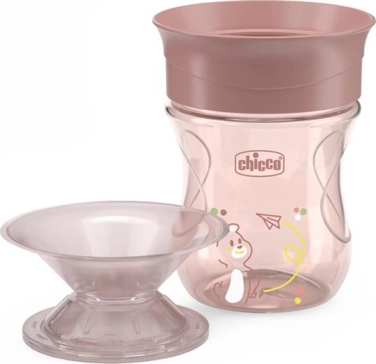 Chicco Perfect Cup 360° je praktičen vadbeni lonček, ki spodbuja samostojnost in pravilne navade pitja. Posebna silikonska membrana se aktivira z dotikom ustnic in omogoča pitje z katerega koli dela roba – kot iz kozarca, a brez nereda. Ergonomske ročaje je enostavno prijeti tudi z drobnimi ročicami.