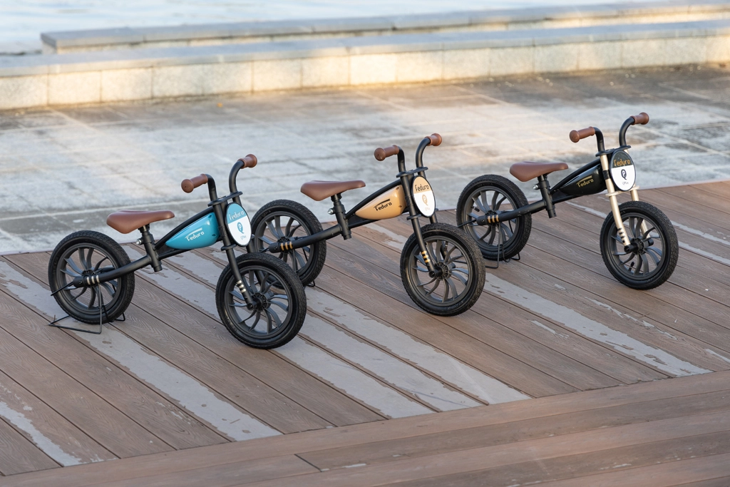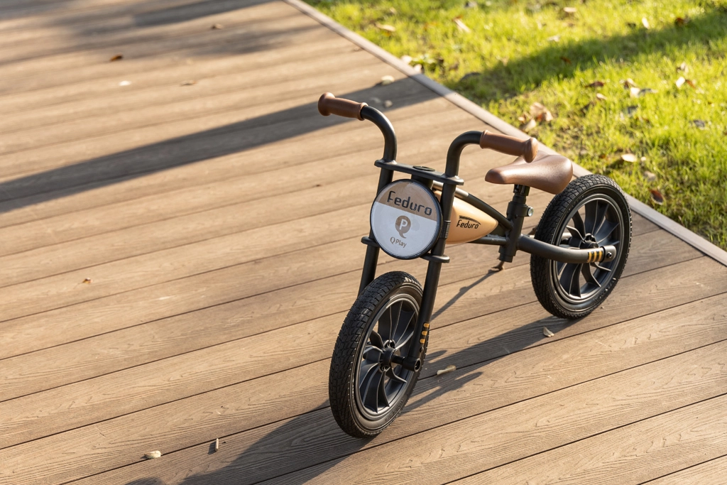 Stilni poganjalec Qplay Feduro s kovinskim okvirjem, navdihnjenim z motorji, pomaga otrokom razvijati ravnotežje, koordinacijo in samozavest. Opremljen je z 12" napihljivimi kolesi za stabilno vožnjo, nastavljivim mehkim sedežem in ergonomskimi nedrsečimi ročaji. Primeren za otroke 3–6 let do 30 kg.