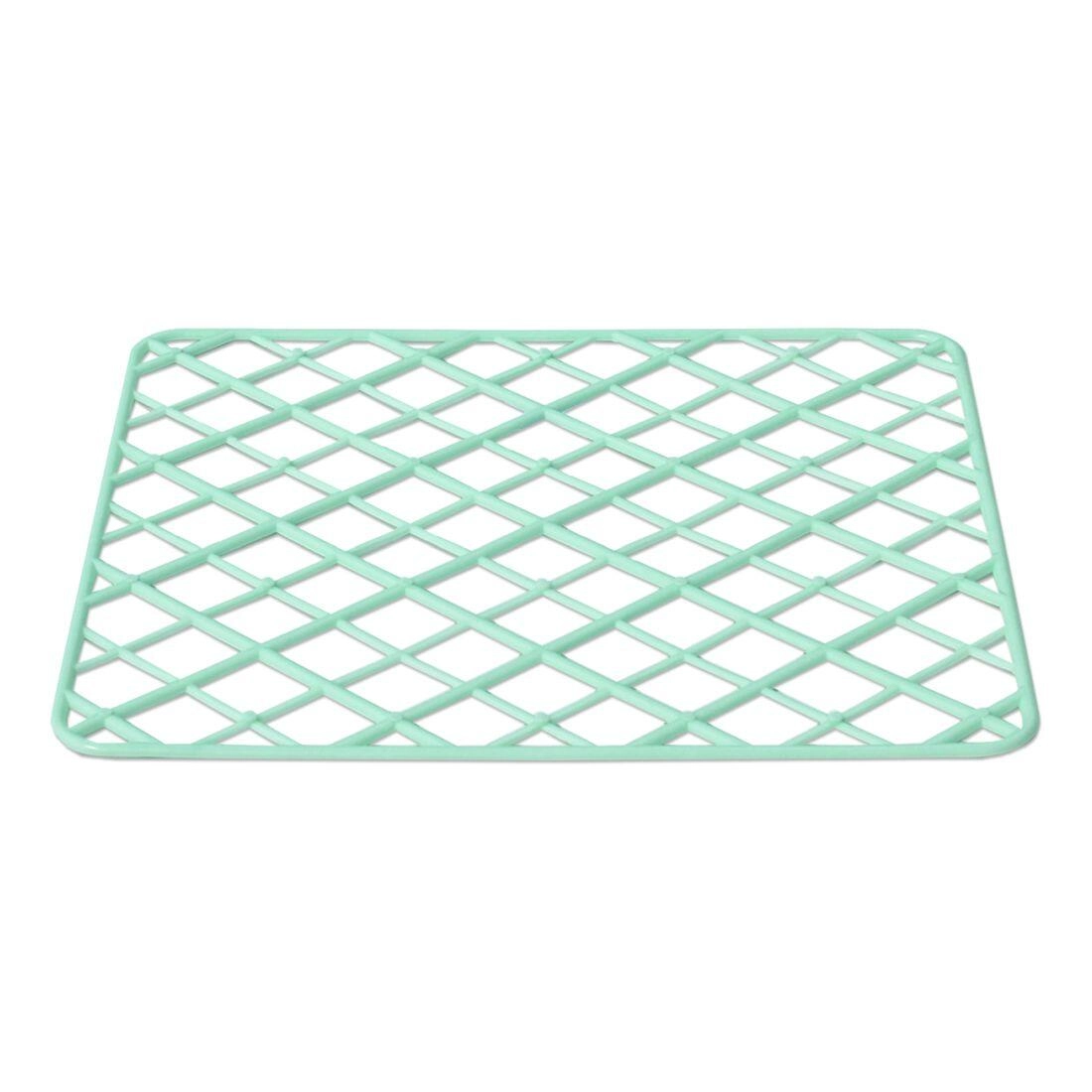 Mera 29 × 25 cm ustreza večini standardnih korit. Zaradi zaobljenih robov in povišanega okvirja predmeti ostanejo stabilno na mestu. Izbirate lahko med mešanico barv – bela, modra, zelena, bež in siva – za uskladitev z vašim kuhinjskim slogom.