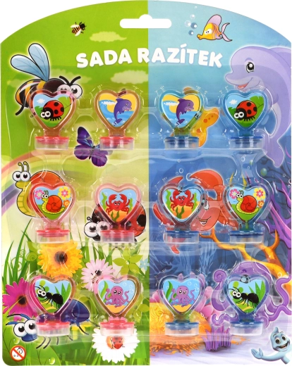 Odkrijte zabavno ustvarjanje z setom žigov »Žuželke in vodni svet« z 12 kosi plastičnih žigov in vnaprej napolnjeno barvo za takojšnjo uporabo brez blazinice za črnilo. Otroci bodo uživali v pisanih motivih žuželk in morskih živali, ki spodbujajo fino motoriko, kreativnost in ustvarjanje lastnih zgodb.