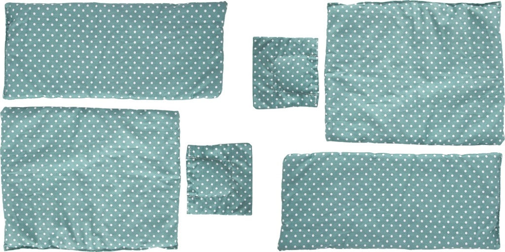 V paketu so mehke blazine, odejice in rjuhe v ujemajočem se pikčastem dizajnu.