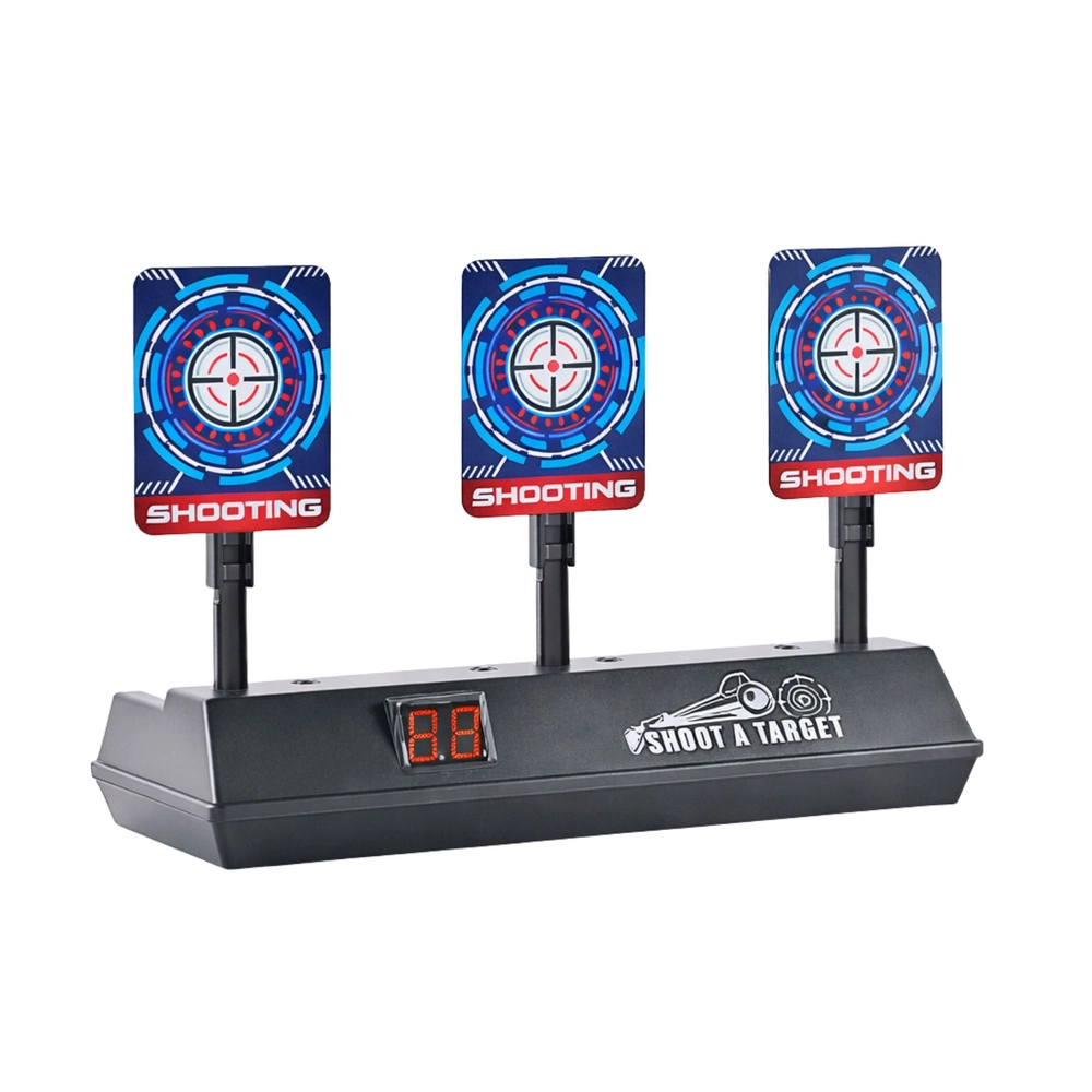 Elektronska tarča s tremi cilji je idealna za tekmovalno ali solo igro. Po zadetku vseh tarč se v nekaj sekundah samodejno vrnejo v začetni položaj. Vgrajeni LED-zaslon sproti sešteva točke, zato lahko zlahka organizirate družinske turnirje in izboljšujete svojo natančnost.