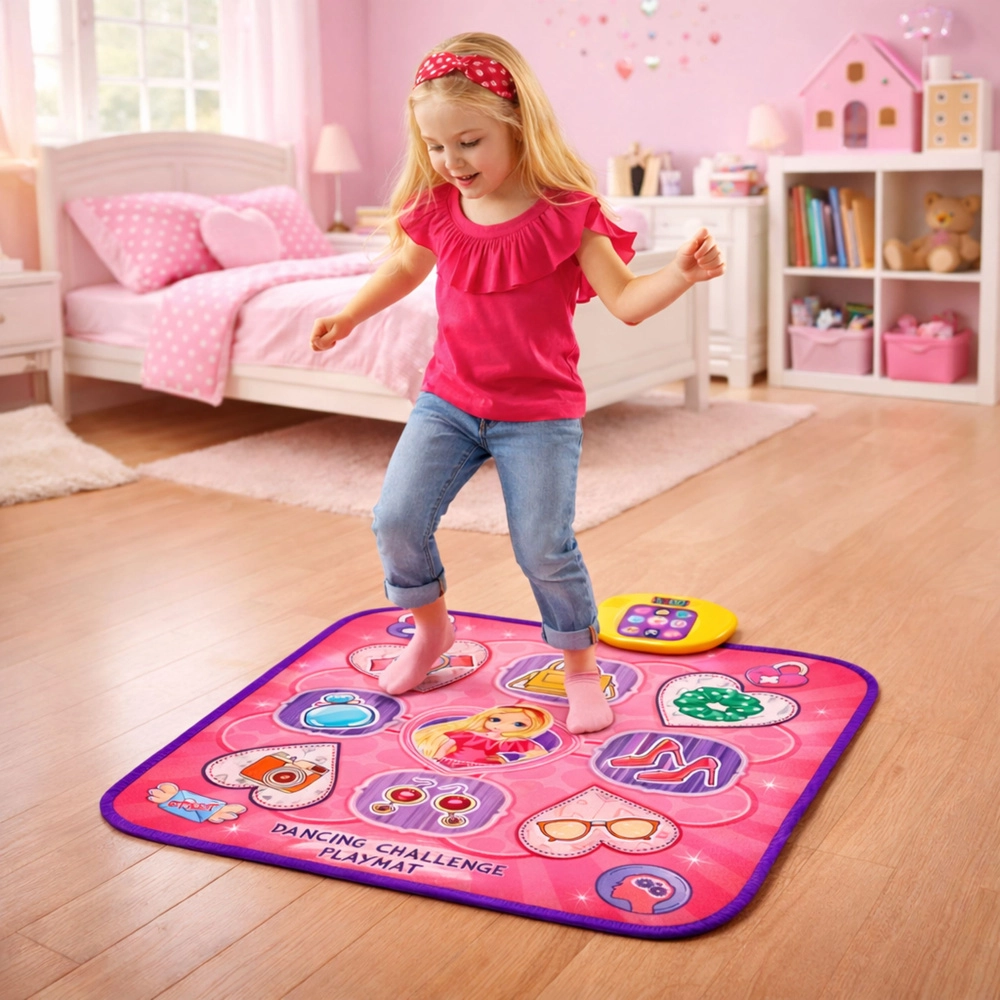 Ta glasbena plesna podloga združuje gibanje, ritem in razvoj otrok v eno privlačno igro. Barvit dizajn s samorogom in svetlobnimi učinki motivira k aktivnosti ter spodbuja koordinacijo, reflekse in telesno pripravljenost. Zahvaljujoč Bluetoothu preprosto predvajate glasbo s telefona ter si prilagodite tempo in slog.