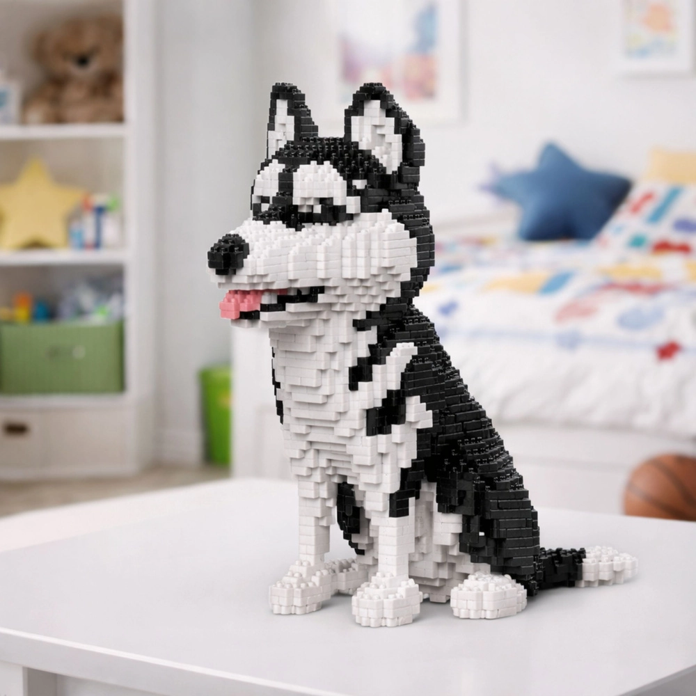 Sestavite realistično figurico psa huskyja iz 1900 mini kock in si privoščite dolge ure ustvarjalne zabave. Podroben 3D model z verodostojnim črno-belim kožuhom je odlična dizajnerska dekoracija za sobo ali pisarno. Sestavljanka iz kakovostnega ABS razvija fino motoriko, osredotočenost in logično mišljenje – idealno za mladostnike in odrasle.
