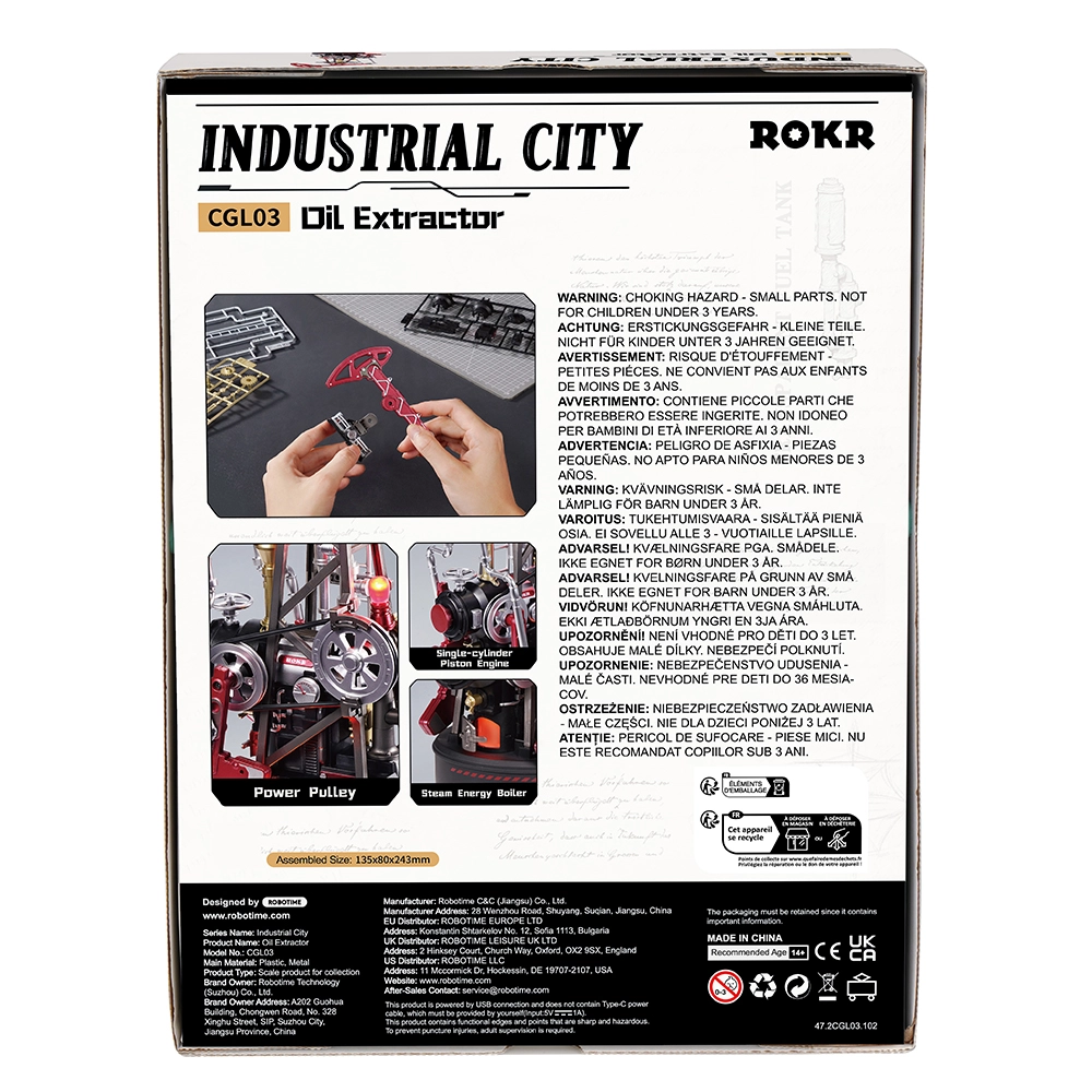 Model je del serije Industrial City in po sestavi postane privlačna gibljiva dekoracija ter učni pripomoček mehanike. Zaradi srednje zahtevnosti bo navdušil tako začetnike kot izkušene graditelje. Napajanje prek USB zagotavlja zanesljivo delovanje brez skrbi z baterijami.