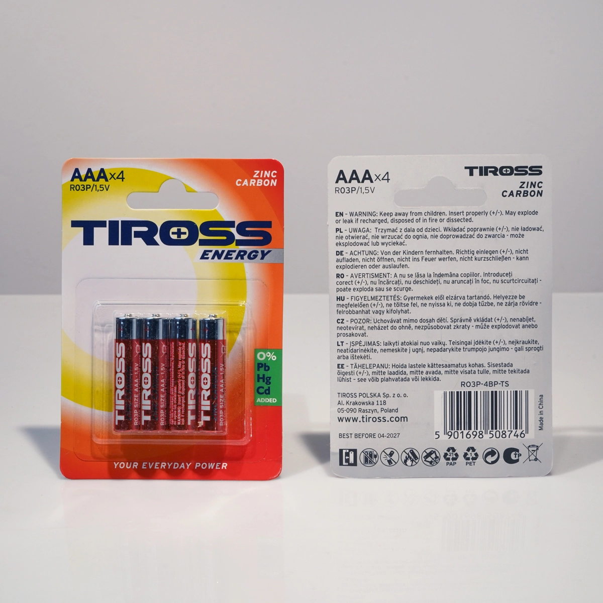 Ti cinkovo-ogljikovi členi velikosti AAA (R03P) predstavljajo ekonomično rešitev za običajne domače naprave z nižjo porabo. Zaradi standardne napetosti 1,5 V so združljivi s širokim naborom porabnikov in zagotavljajo zanesljivo delovanje pri vsakodnevni uporabi.