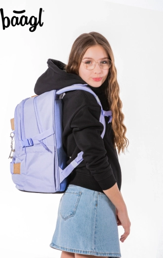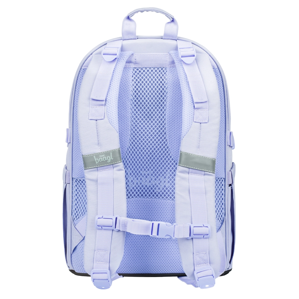 Set BAAGL SKATE LILAC je zasnovan za šolo in prosti čas. Glavna zvezda je lahek nahrbtnik (850 g) s prostornino 25 l in nosilnostjo 7 kg, ki ponuja tri predelke, organizator, žep za 15" prenosnik in trakove za skateboard. Ergonomsko oblikovano hrbtišče, podloženi in nastavljivi ramenski trakovi, prsni pas ter stranski kompresijski trakovi zagotavljajo udobje in stabilnost pri nošenju.