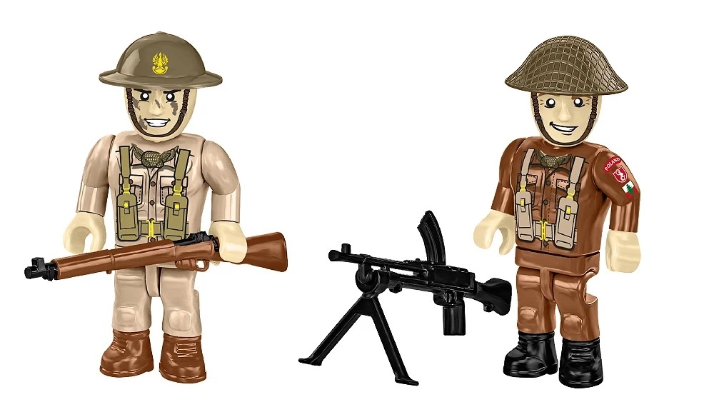 Dve britanski figurici, dva poljska vojaka in dva nemška padalca z avtentičnimi čeladami, jopiči in potiski omogočajo zvesto upodobitev ključnih trenutkov bitke.