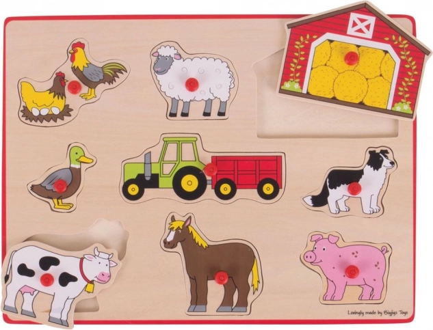 Vstavljanka Kmetija Bigjigs Toys ponuja zabavne in izobraževalne trenutke za otroke. Uskladi vsak pisano obarvan kos z ustrezno oblikovano luknjo na osnovni plošči. Ta lesena vstavljanka pomaga razvijati besedni zaklad in asociacijo oblik, barv in slik.