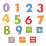 Številke so izdelane iz kakovostnega lesa ter opremljene z živahnimi barvami in vzorci, ki spodbujajo otroško ustvarjalnost.