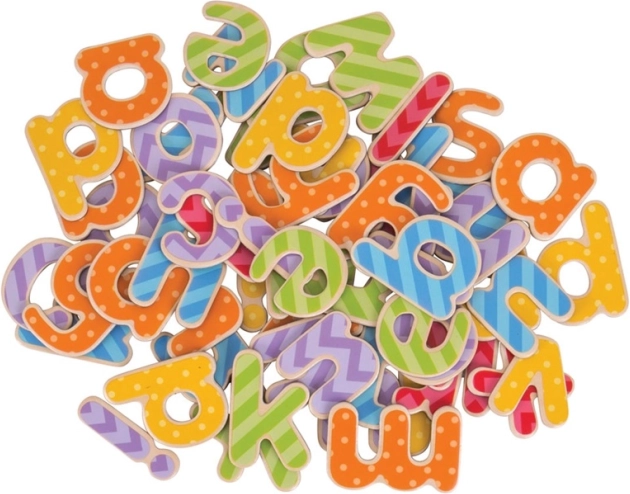 Zabavna in izobraževalna igrača za otroke - barvne magnetne črke iz lesa, ki pomagajo razvijati črkovalne sposobnosti in ustvarjalnost. Vsebujejo 63 kosov za neskončno zabavo.