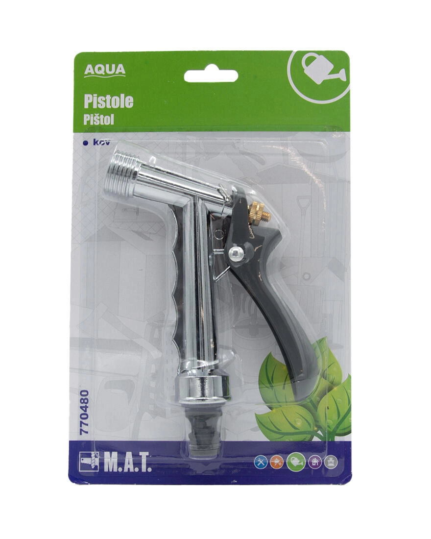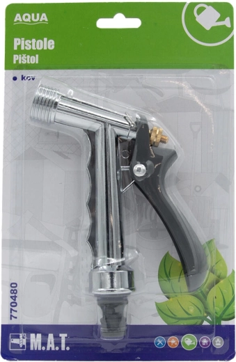 Kovinska pištola AQUA je zasnovana za vsakodnevno uporabo na vrtu. Kovinska konstrukcija zagotavlja visoko odpornost proti obrabi in mehanskim poškodbam, medtem ko ergonomska oblika omogoča udoben oprijem tudi pri daljšem delu.