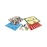 Paket vsebuje: 2 obojestranska igralna načrta (4 igralne površine), 32 šahovskih figur v dveh barvah, 16 figur v štirih barvah, 30 daminih ploščic v dveh barvah, 6 igralnih kock s pikami, 1 navodila.