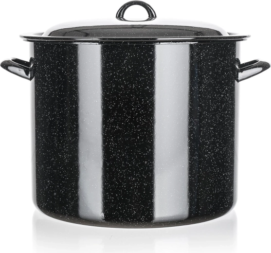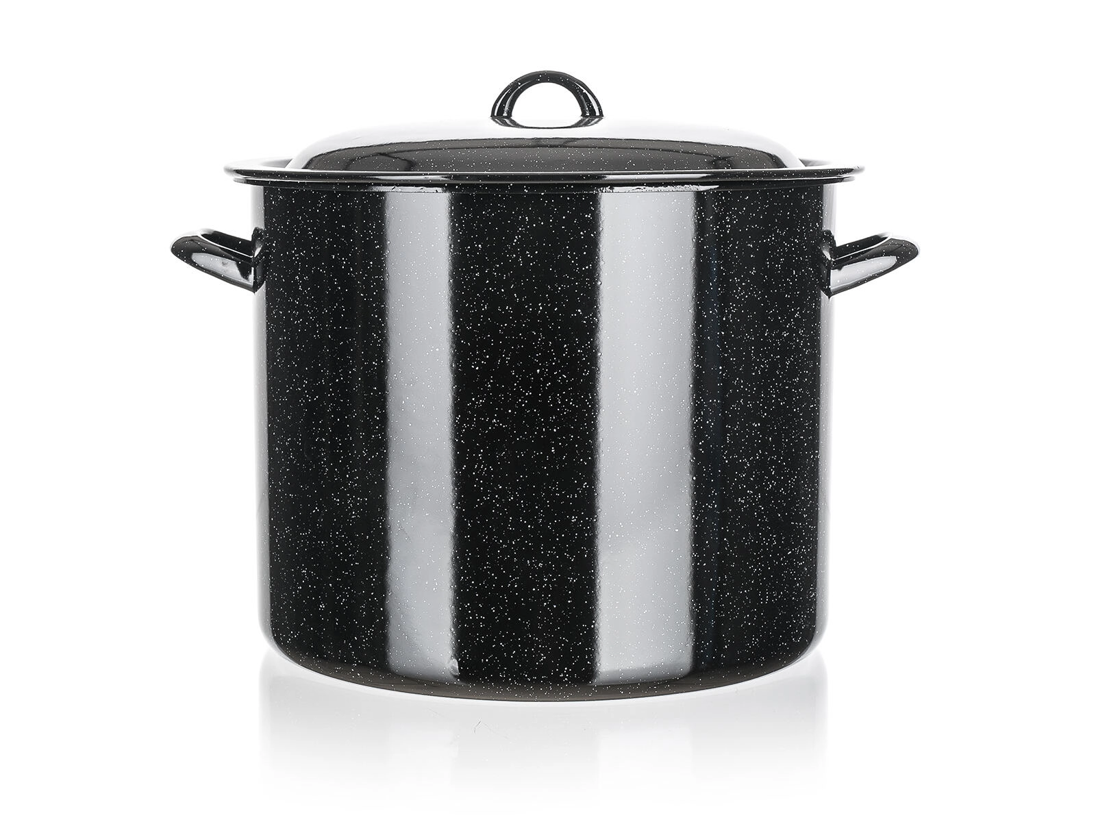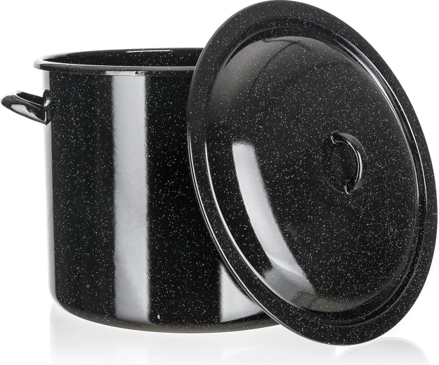 Odporen emajliran premaz je higienski, neporuzen in enostaven za čiščenje. Široka stranska ročaja zagotavljata varno rokovanje. Lonec je združljiv z vsemi običajnimi kuhalnimi ploščami razen z indukcijo.