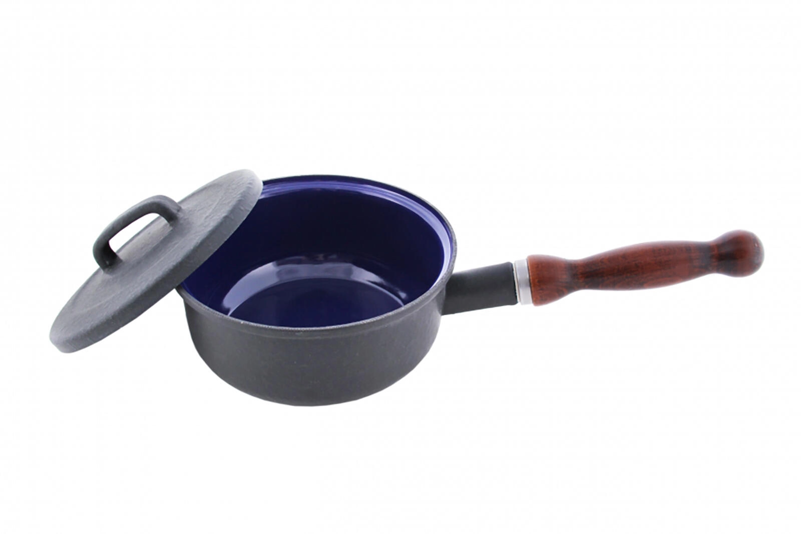 Klasičen emajliran lonec s prostornino 1,25 l, premera 16 cm in praktičnim pokrovom je idealen za vsakodnevno kuhanje, pogrevanje in redukcijo omak. Ponuja odporen emajl s temno modro notranjostjo, kompatibilnost z indukcijo in vsemi vrstami štedilnikov, preprosto vzdrževanje ter dolgo življenjsko dobo. Odstranljiv lesen ročaj olajša rokovanje in shranjevanje.
